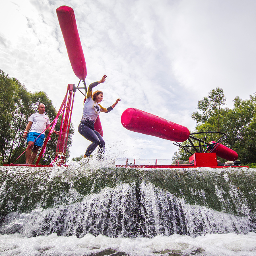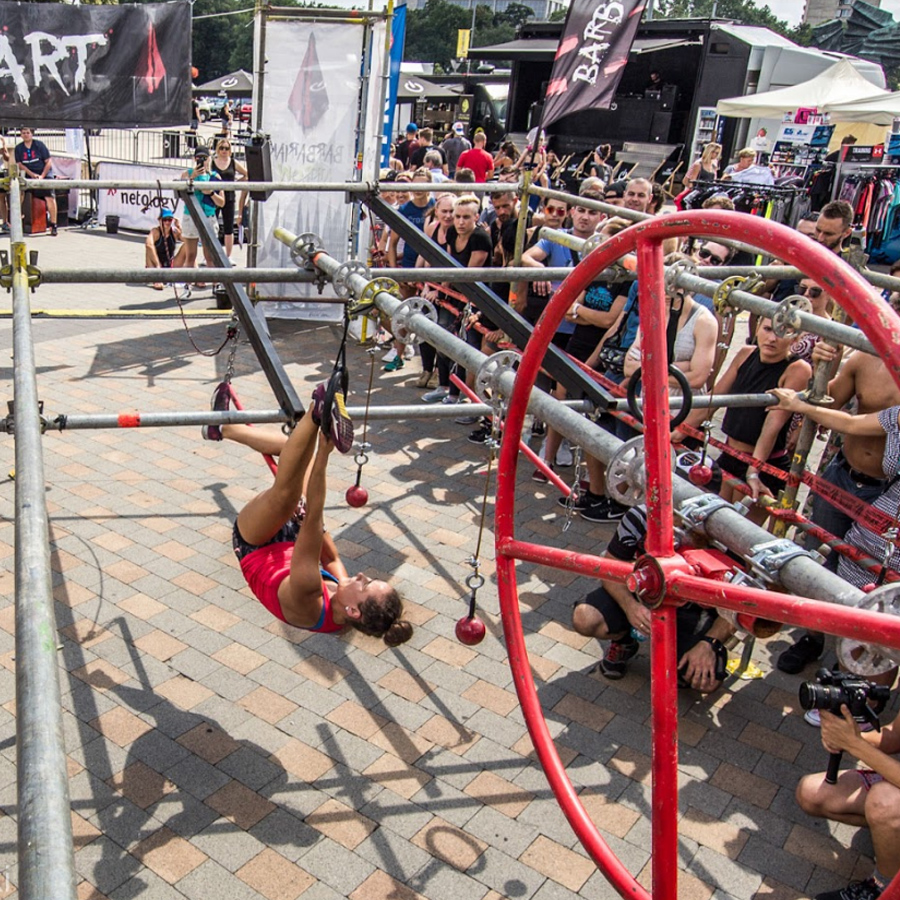 Na sam koniec zostawiliśmy prawdziwy barbarzyński cukiereczek, czyli ruchome belki, które trzeba pokonać wieszając się na nich, jedna po drugiej. Zbawienny dźwięk dzwonka zalicza przeszkodę. Rada Wodza: Pod balem znajduje się lina która pomoże w wpełzaniu, jedną nogą się odpychaj od belki- odciąży to ręce których świeżość przyda się na kolejnych elementach Maximusa.